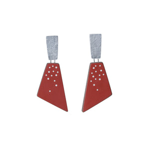 Formica and walnut drops gently swing from tapered silver stud earrings. A scattering of silver inlaid dots add detail and sparkle to the Formica. Elegant, minimalist earrings which are lightweight and easy to wear.