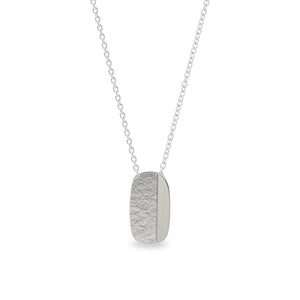 A double layered oblong shaped pendant with folded details. A quietly sculptural piece with a minimalist aesthetic.