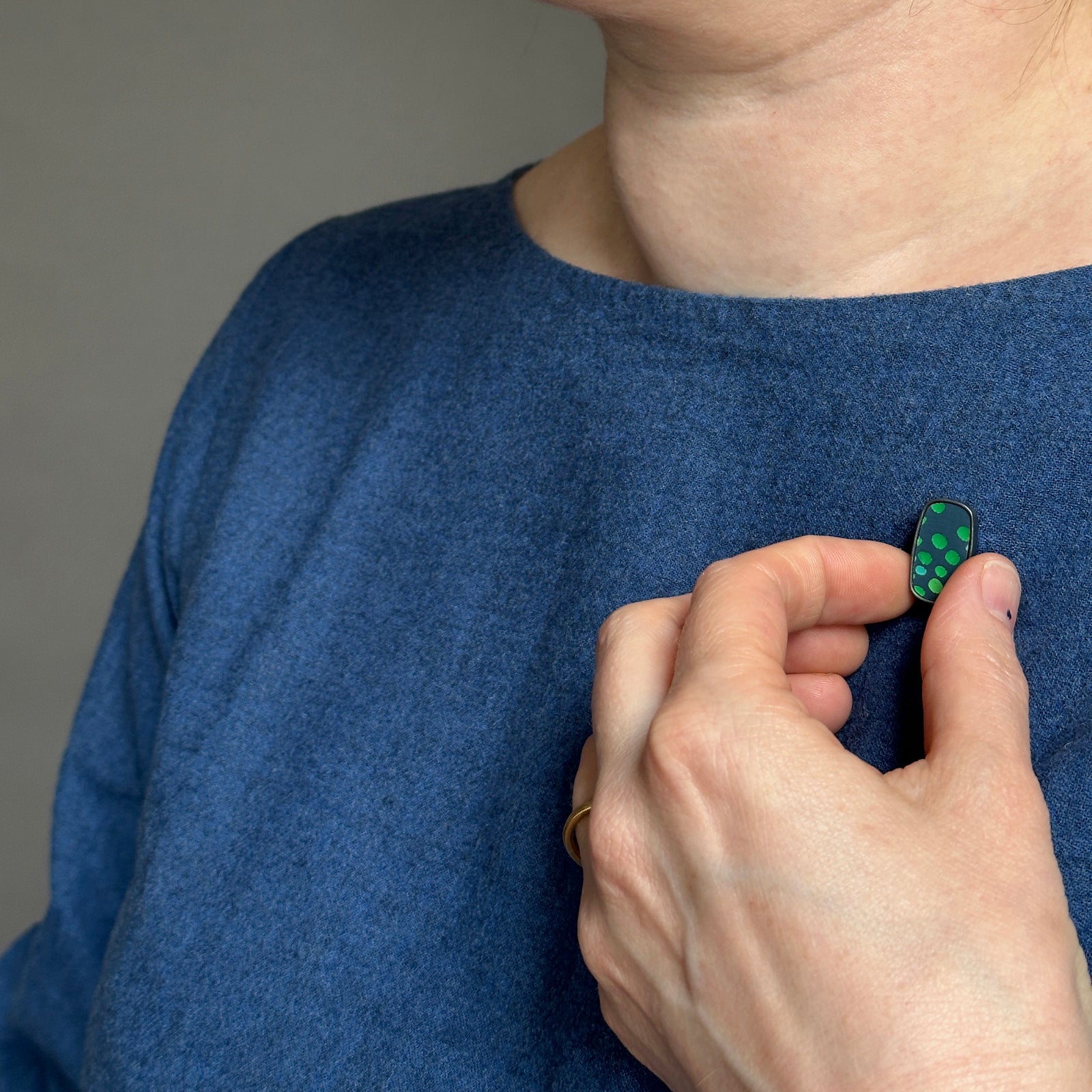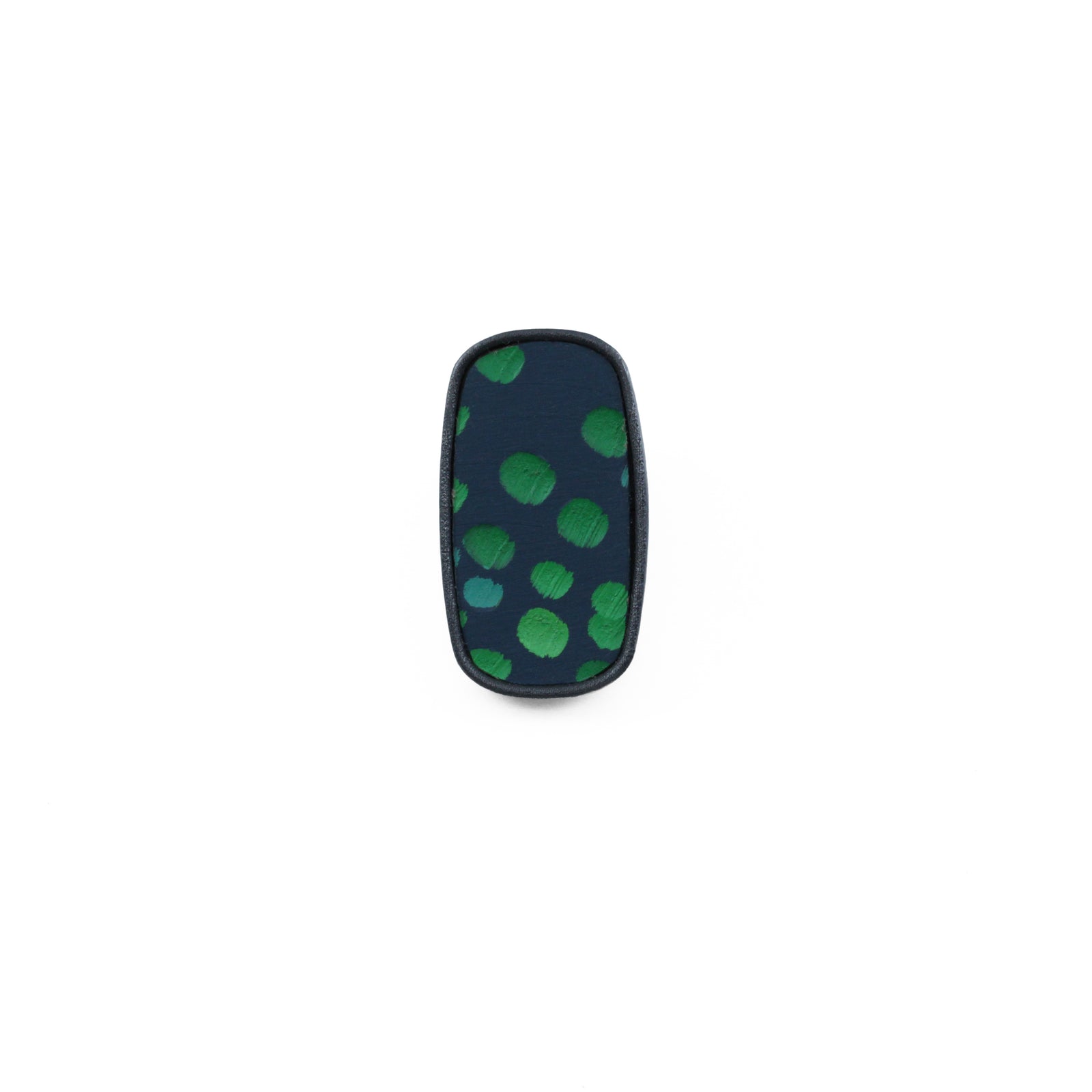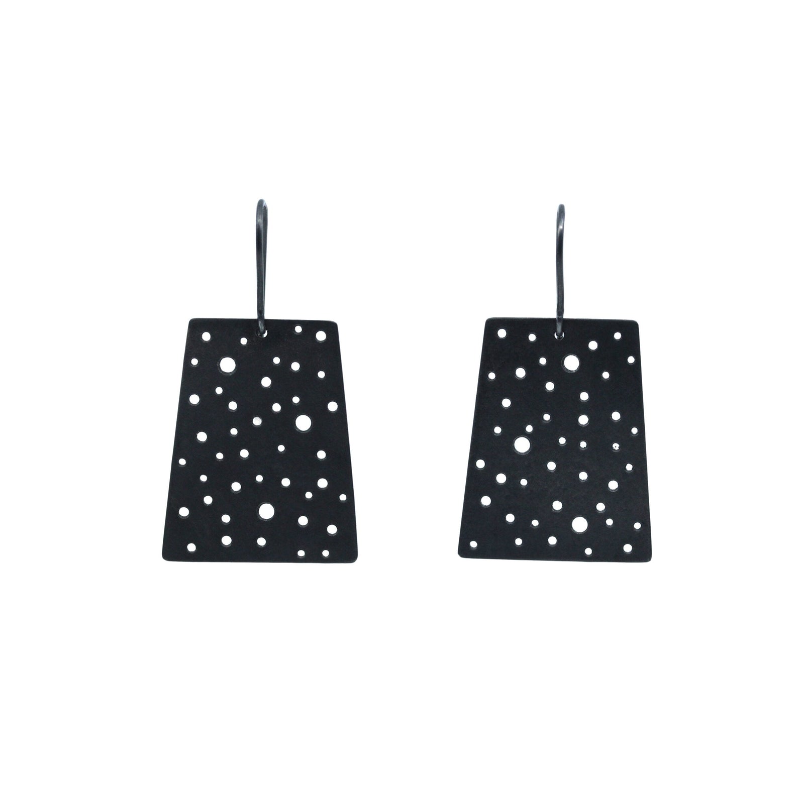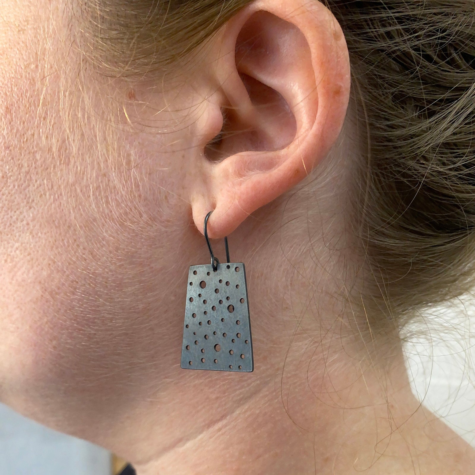 Sterling silver which has been oxidised to a refined matt dark grey.