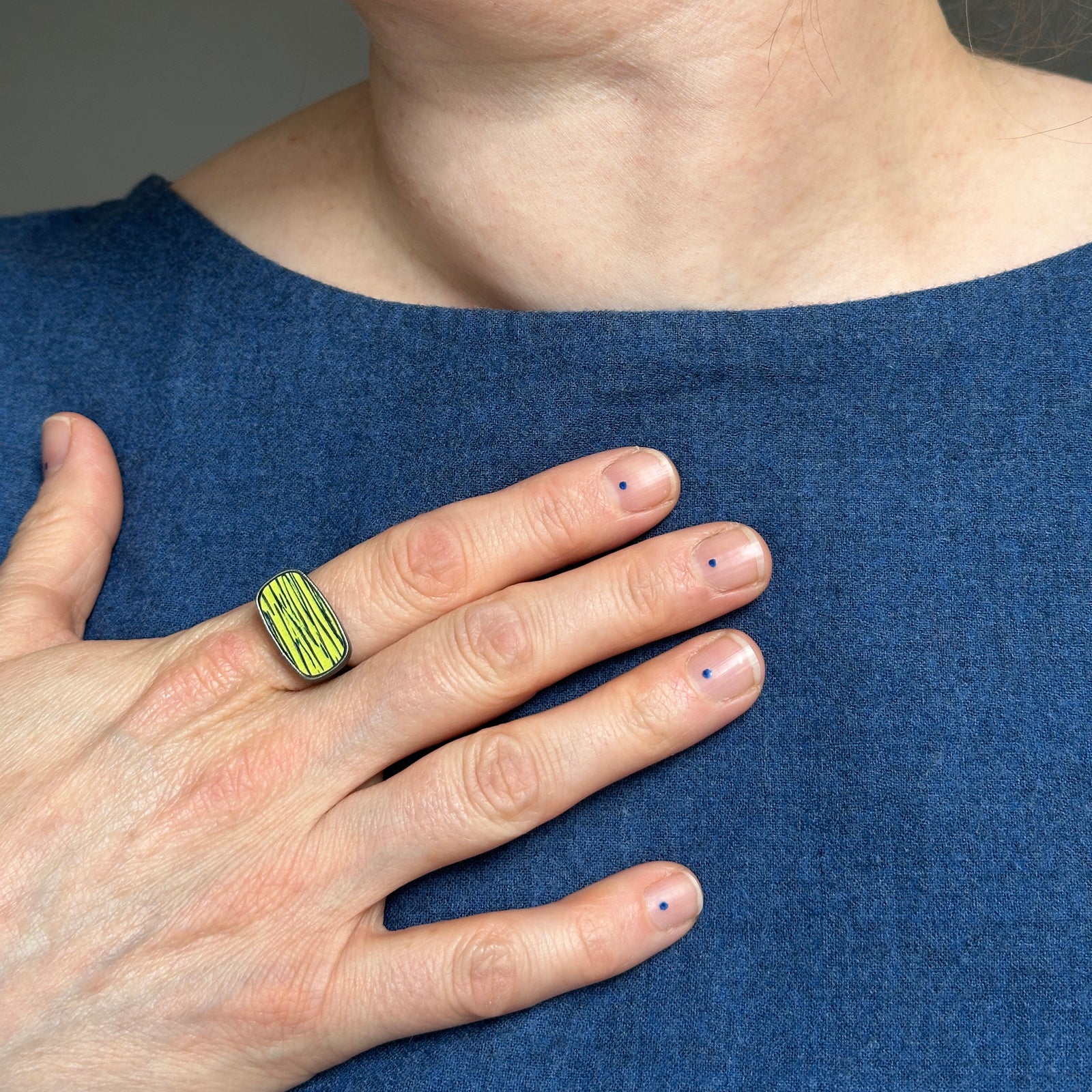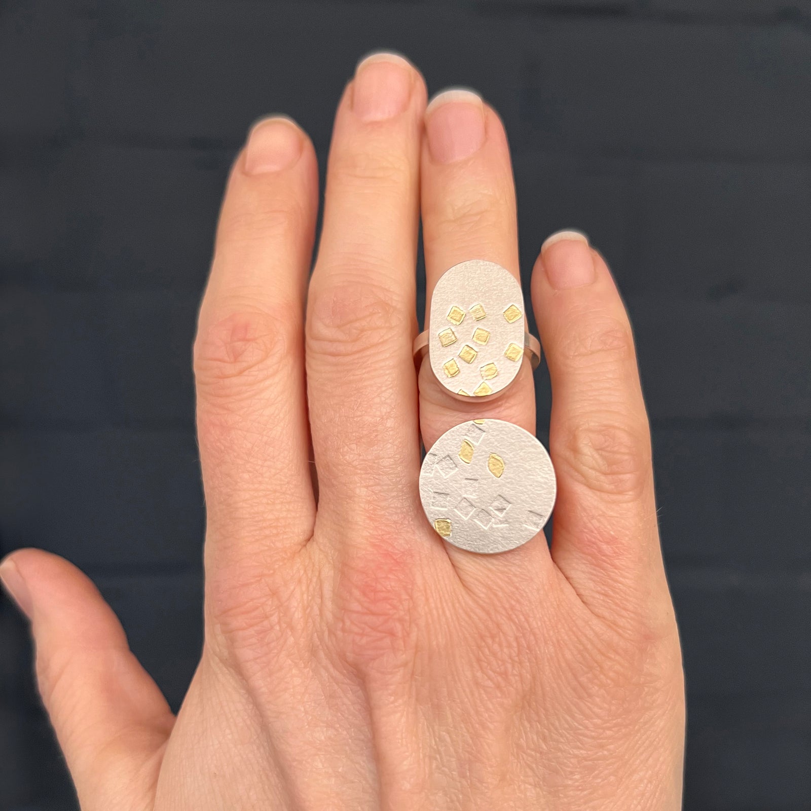 Contemporary rings, from delicate to sculptural and dark to colourful. Each one is handmade and one-of-a-kind. If there is a ring you like that is not in your size it may be possible for me to make something similar for you, please get in touch!